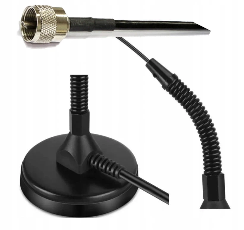 Antena wyposażona jest w mocną podstawę magnetyczną, co umożliwia szybki montaż na dachu pojazdu bez ingerencji w karoserię. Kabel o długości 4 metrów zapewnia wygodne poprowadzenie instalacji do wnętrza auta.