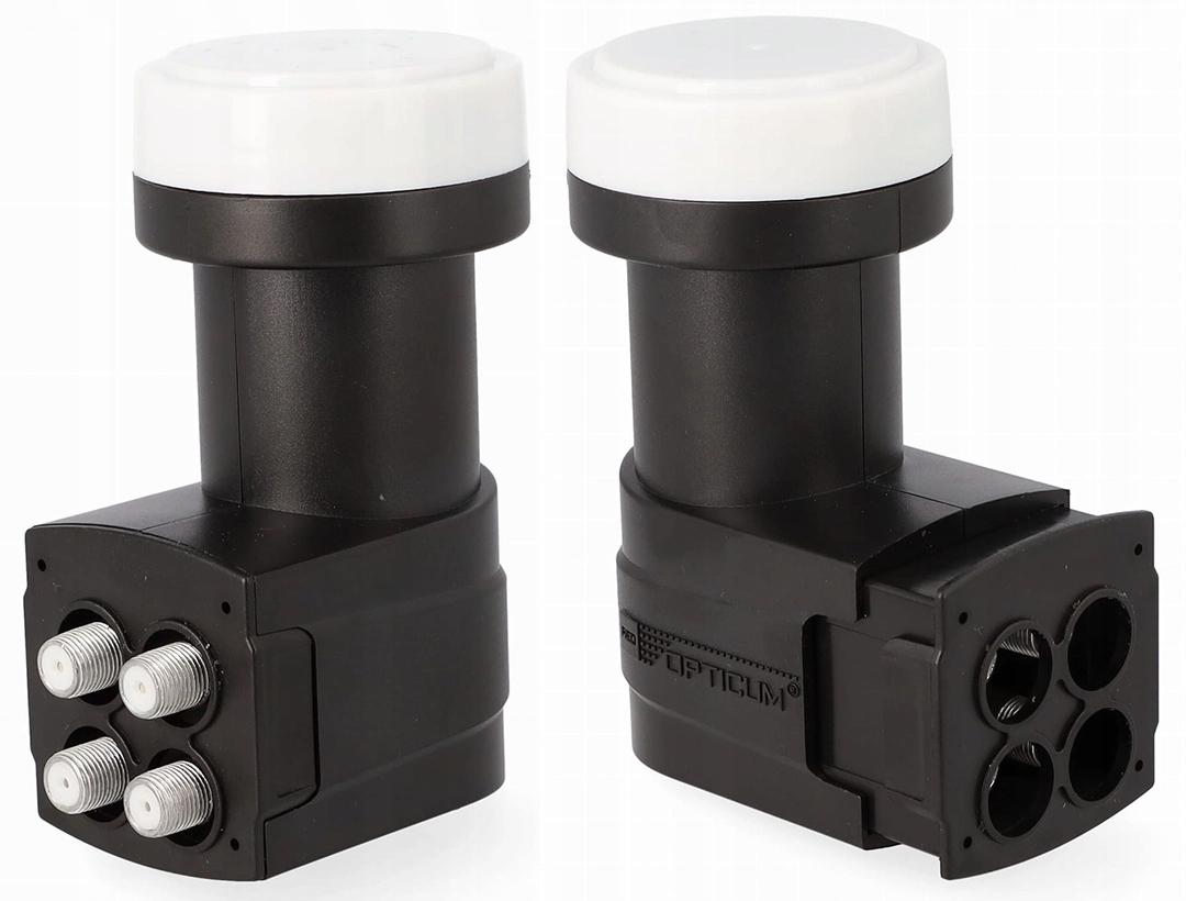 Konwerter satelitarny typu Quad to rozwiązanie umożliwiające podłączenie do czterech niezależnych tunerów do jednej anteny. W jednej obudowie znajdują się cztery pełnozakresowe konwertery, co pozwala na elastyczne konfiguracje instalacji – od prostych zestawów domowych po bardziej rozbudowane systemy z dekoderami PVR.