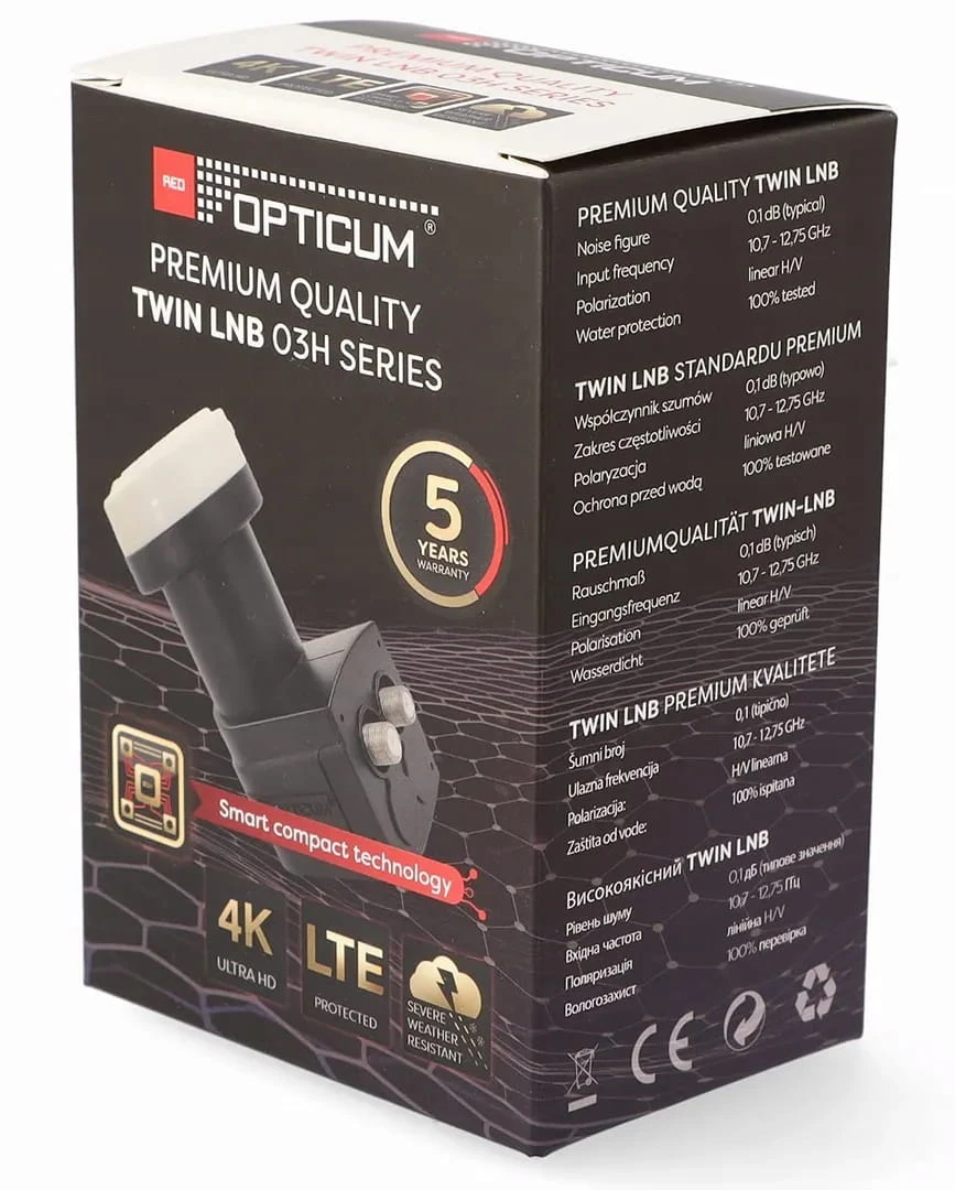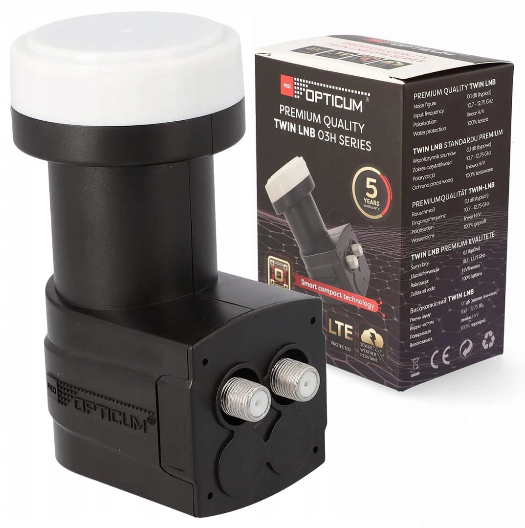 Model Opticum Red Premium 03H Twin zapewnia stabilny odbiór sygnału z jednego satelity, oferując wysoką jakość obrazu w transmisjach cyfrowych, w tym HD. To dobry wybór do instalacji domowych oraz systemów multiroom.