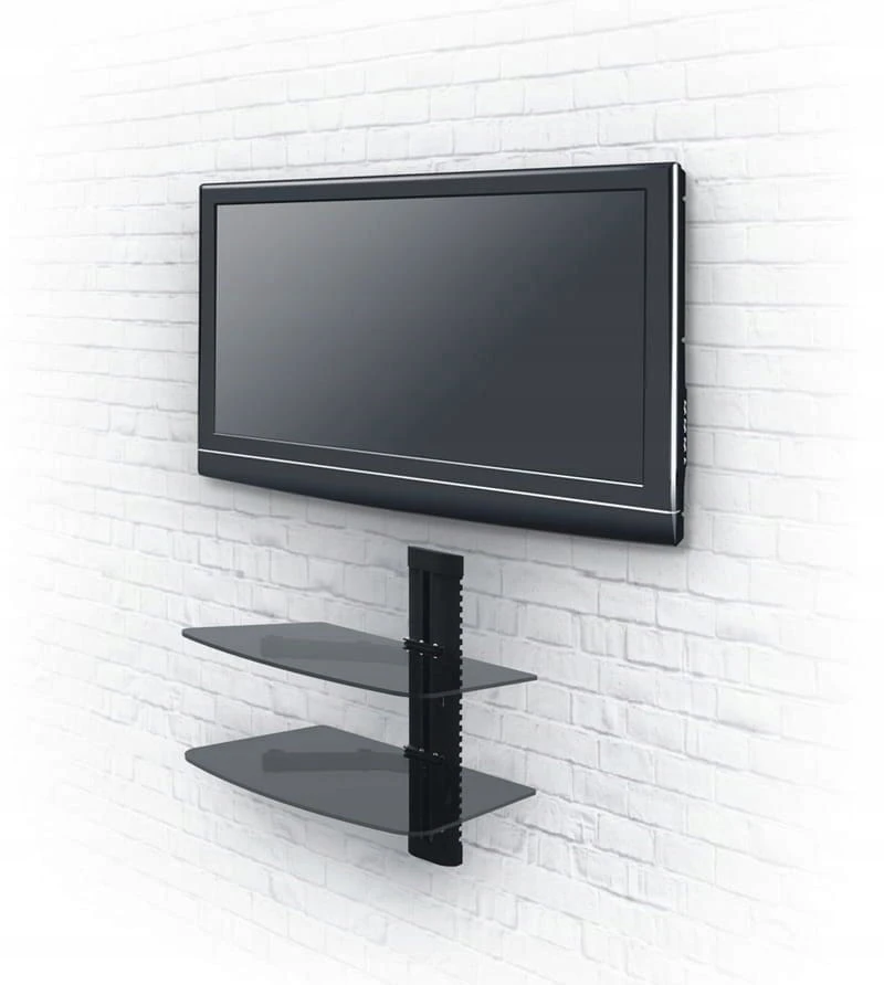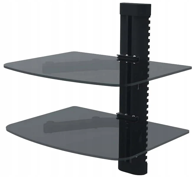 Dwa poziomy półek umożliwiają wygodne ustawienie kilku urządzeń jednocześnie – dekodera, tunera DVB-T2, konsoli, odtwarzacza DVD czy sprzętu audio. Regulacja wysokości pozwala dopasować odstępy między półkami do własnych potrzeb, a zintegrowany system maskowania kabli pomaga zachować estetykę i porządek.
