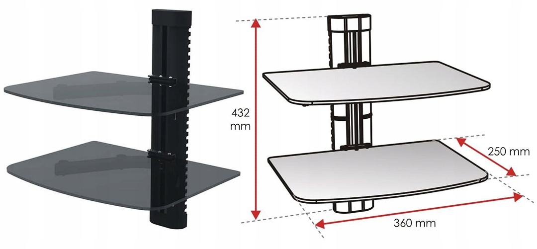 Półka ścienna RTV podwójna RED EAGLE TWO szklana do 10 kg