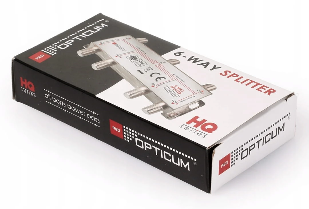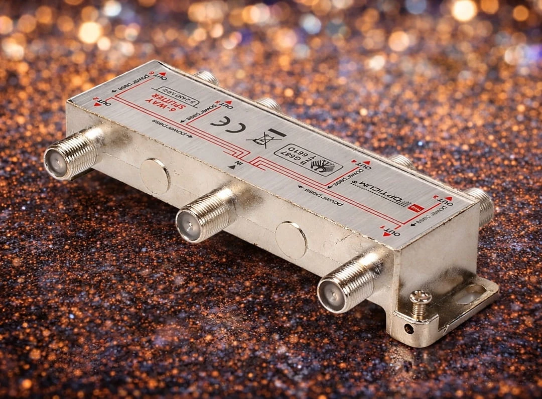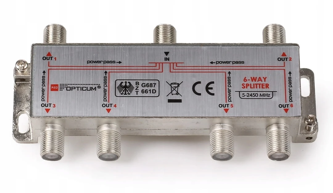 Rozgałęźnik antenowy 1x6 umożliwia rozdzielenie sygnału na aż sześć niezależnych odbiorników. Pracuje w szerokim zakresie 5–2400 MHz, dzięki czemu obsługuje zarówno telewizję naziemną DVB-T/T2, jak i sygnał satelitarny DVB-S2.