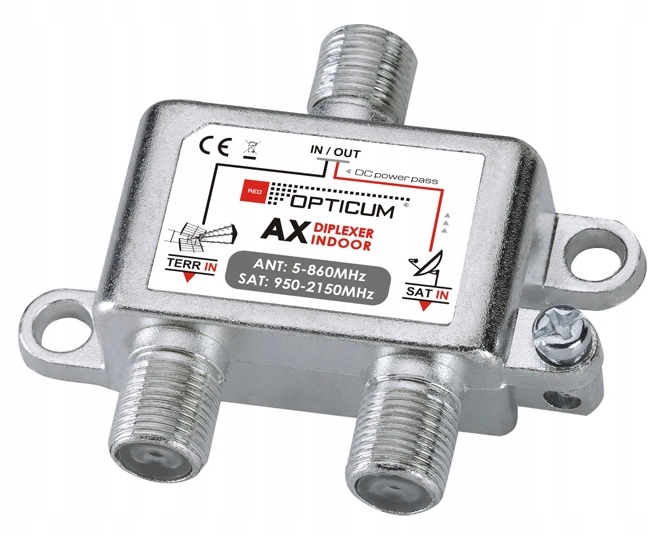 Sumator DIPLEXER INDOOR umożliwia połączenie sygnału satelitarnego z konwertera (np. Single) oraz sygnału telewizji naziemnej DVB-T w jeden przewód. To praktyczne rozwiązanie, które pozwala ograniczyć ilość okablowania i uprościć instalację.