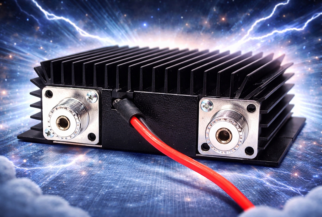 Wzmacniacz KL 35 to kompaktowe urządzenie przeznaczone do zwiększenia mocy sygnału w paśmie radiowym. Pracuje w zakresie częstotliwości 28–29.7 MHz i obsługuje tryby AM oraz FM, zapewniając stabilne i efektywne działanie. Przy mocy wejściowej od 1 do 5 W umożliwia uzyskanie mocy wyjściowej na poziomie 25–35 W, co znacząco poprawia zasięg transmisji. Urządzenie zasilane jest napięciem 12–14 V, dzięki czemu może być stosowane w instalacjach samochodowych (wyłącznie podczas postoju).